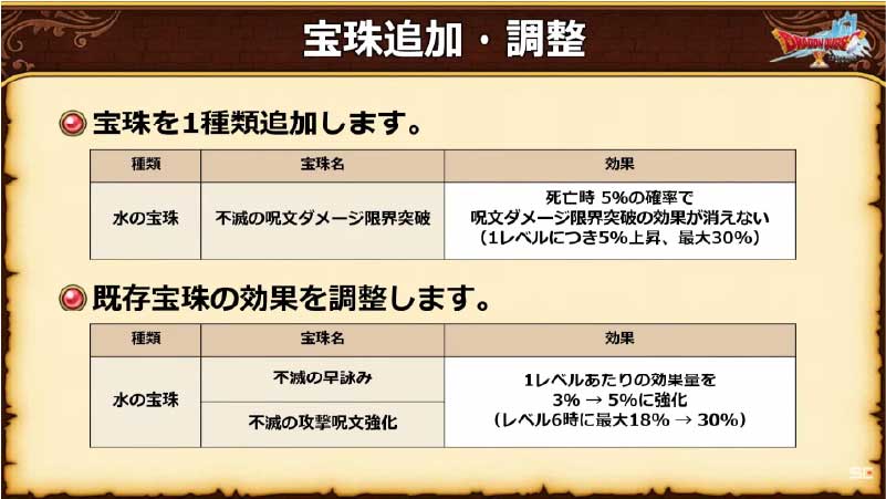 こうげき魔力のダメージキャップが1500から1999になったのと呪文暴走時の倍率が1.5倍から2.3倍に変更。