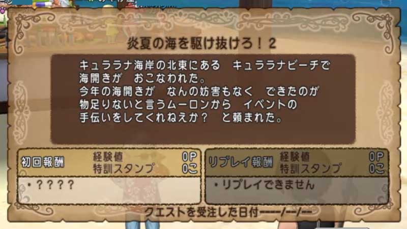 ムーロンさんにはカンカン帽もらったときと、なんかサメ王国?っぽいところに行ったときの記憶はあるので過去2回は夏イベやってるような気がしますが。