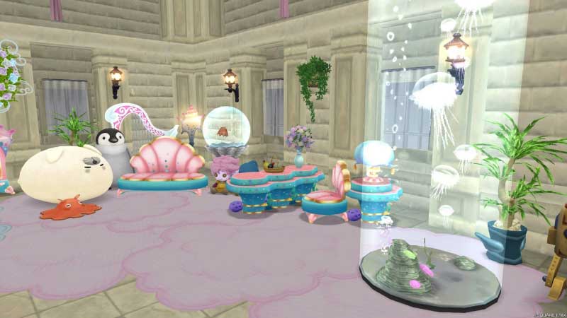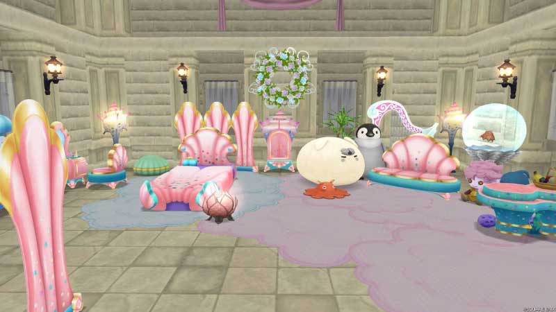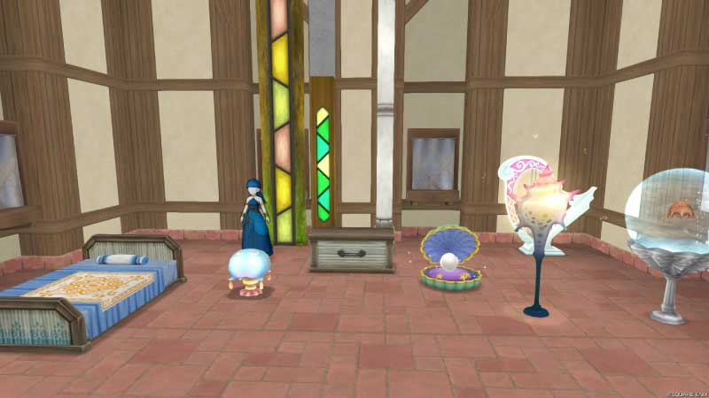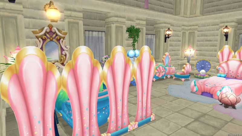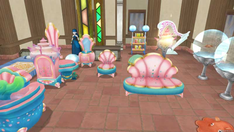 BGM目当てで置いてあった2024年のウェルカムギフトでもらったマーメイドハープに合わせて、マーメイド仕様に替えてみよーでサブくんの家に放置してあったマーメイド系&それっぽいものをひとまず移動。