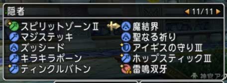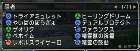 スキルリストは二段表示にして1ページ目にトライアミュレット、ヒーリングドリーム、デュアルプロテクトなど頻繁に使うものや頻繁に使う呪文など。