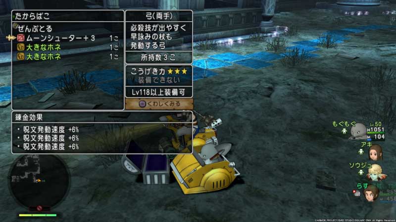 通常装備がブーメラン(ステラトルネード呪速)で裏に弓(ムーンシューター呪速)。