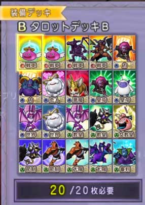 戦車4枚、力2枚、恋人1枚、悪魔1枚、皇帝2枚、世界2枚、教皇2枚、女教皇1枚、節制2枚、太陽2枚、審判1枚。