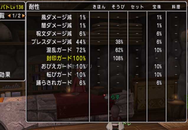耐性はブレス耐性44%とマヒ耐性。
